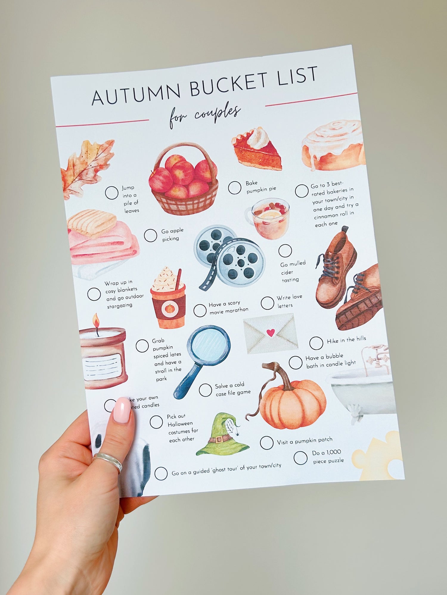 Embrace the cosy season together with some romantic autumn activities. Tick them off as you go along and see if you can complete all of them by the end of autumn!
